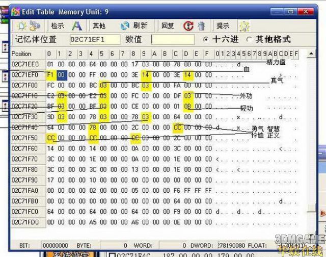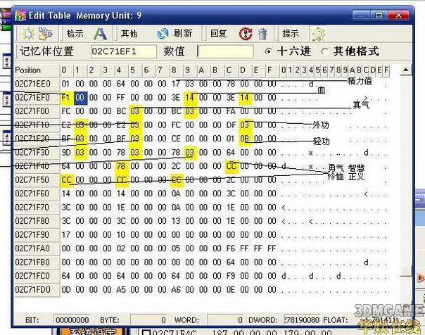 精力值在等级的前两位 17 03 00 00(精力) XX 00 00 00 XX 00 00 00 (等级)