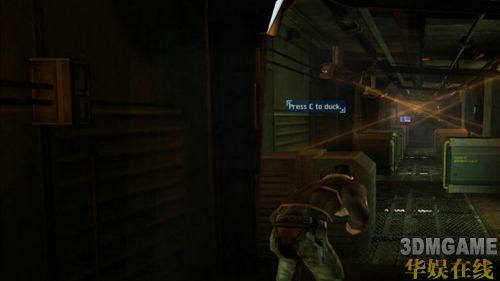 这个走廊需要蹲下翻滚前进,建议先关掉防御系统再安装炸弹