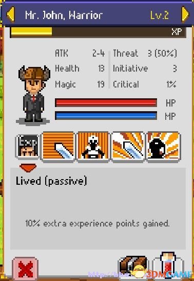 1、Mr. John:Lived——该玩家额外获得10%经验值。