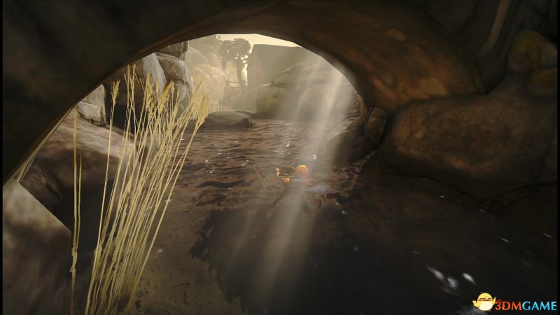 那么兄弟俩就只好走右下方的湿滑斜坡路来到小溪前,弟弟一看见水就害怕了,此时哥哥只好先下水,然后让弟弟(按RT键)攀附在哥哥的背上,哥哥往下游右侧的河岸游去。