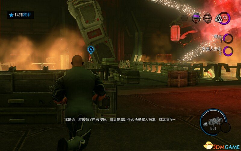 第二阶段:BOSS用保护罩,用念动力抓取自爆CID投掷BOSS,注意如果你没升级投掷距离是仍不到的,必须飞过去。小兵很多,利用死亡冲击吧小兵打下去即可,不用全杀。