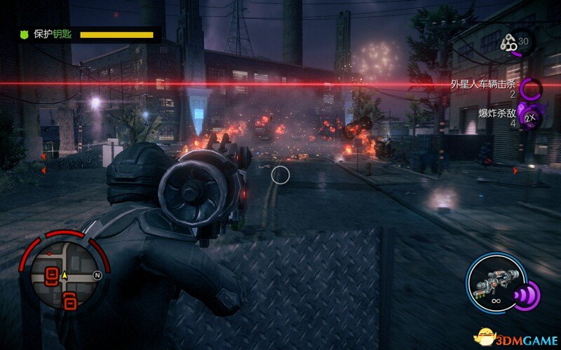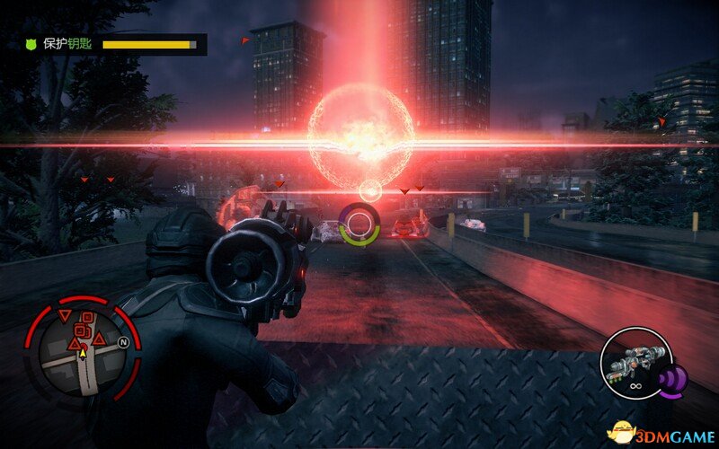 一路火箭筒轰炸后方车辆,后来桥梁消失用念力拿起钥匙继续来到核心位置。