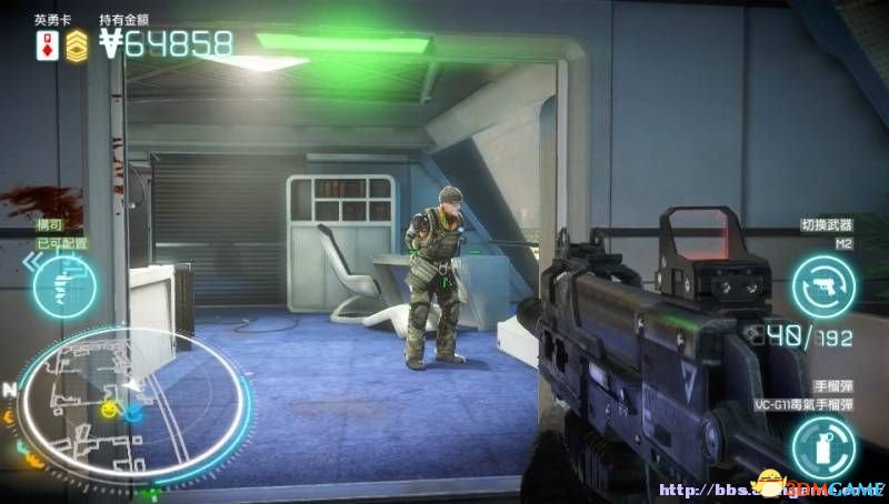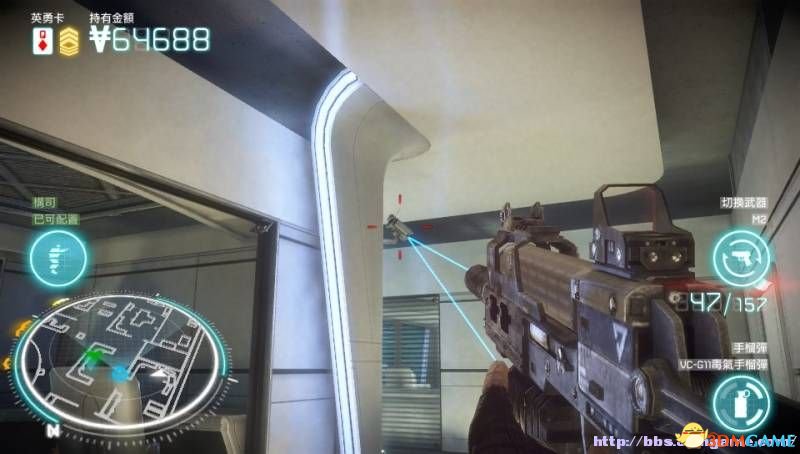 然后跟随NPC穿过走廊,来到房间里同时击毙两名赫尔盖斯特士兵,左转即可看见第二个摄像头,击破。