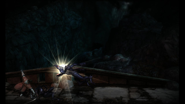 step2.去到一堵只剩半截的屋墙前会遇到一只长舌怪,此时需要看准时机格挡,然后再予以反击。