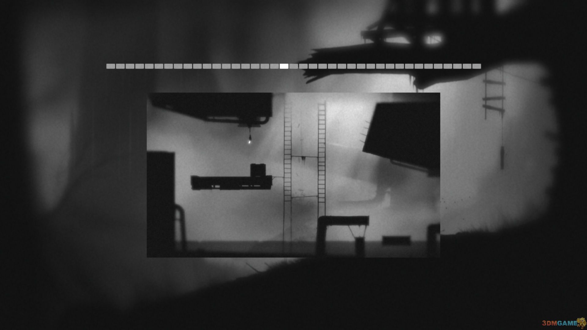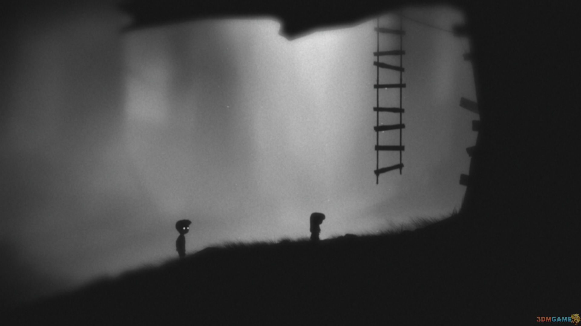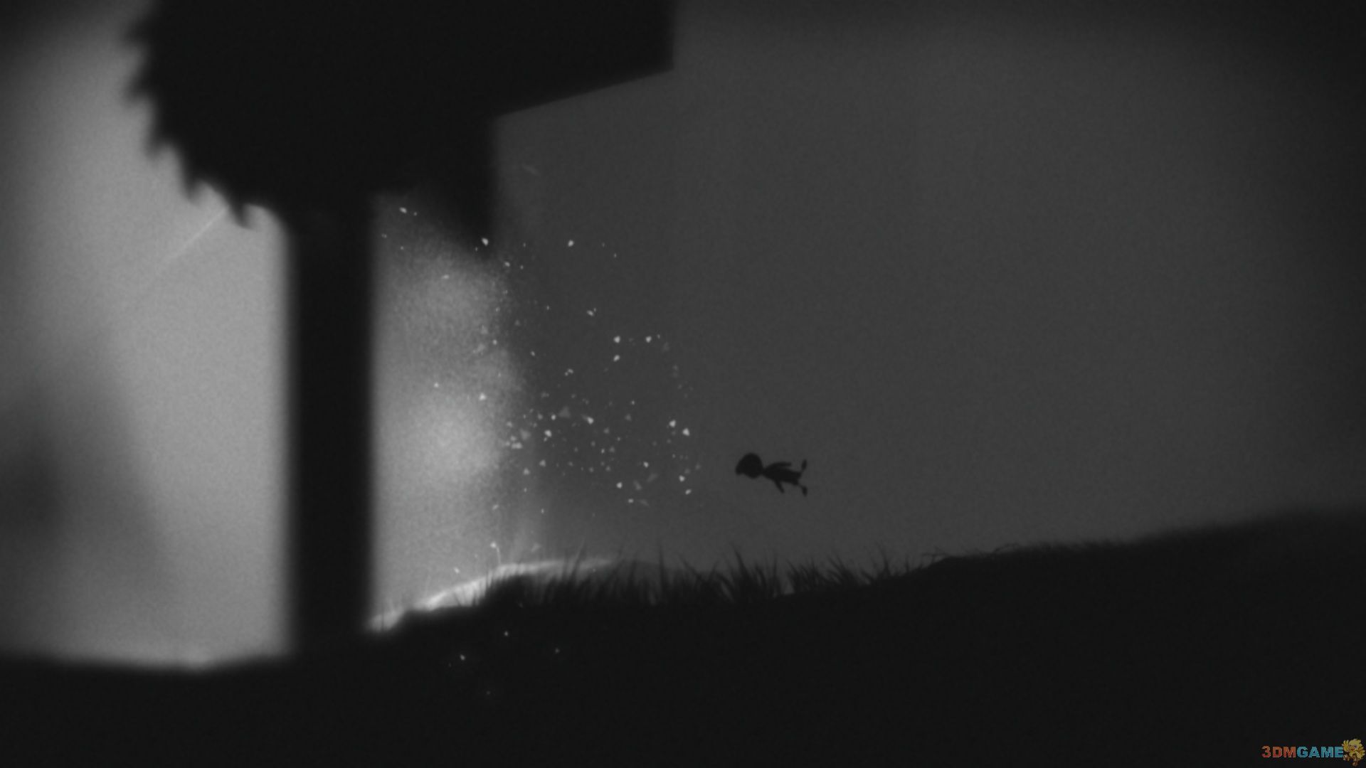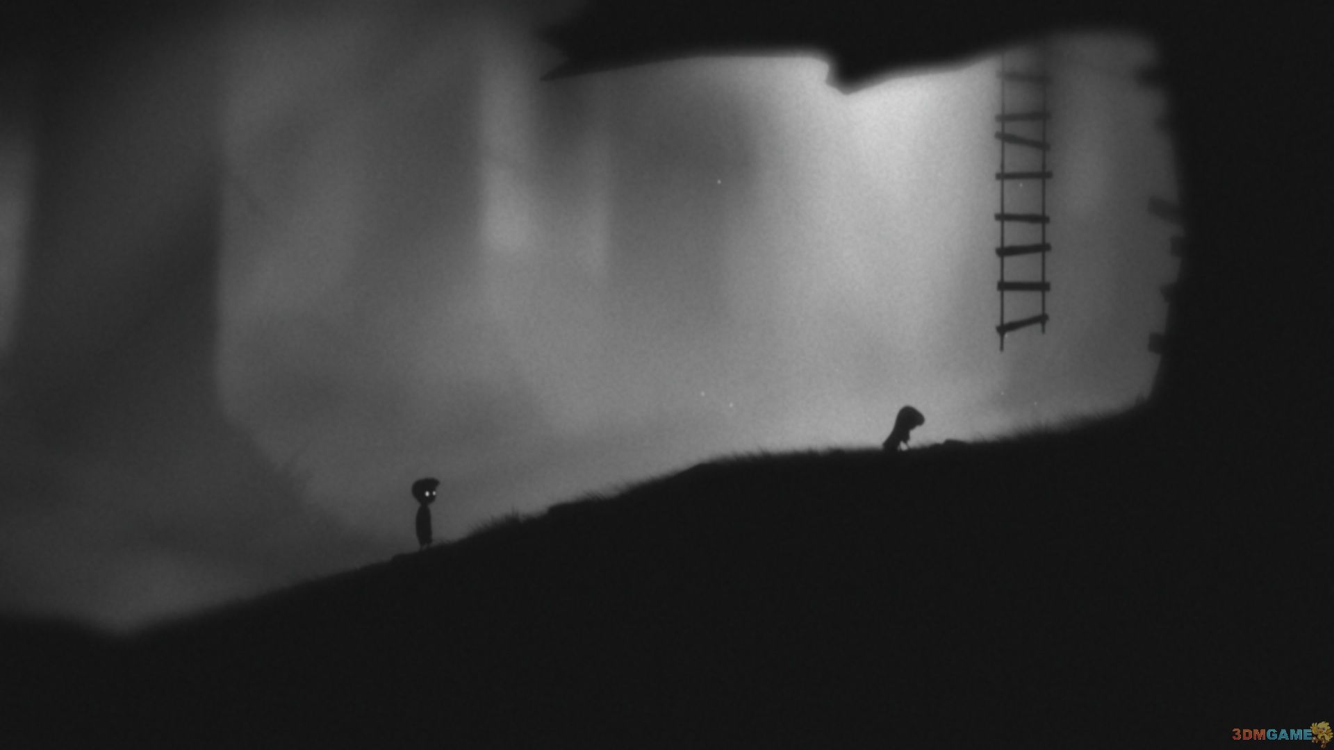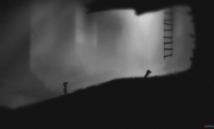 回到菜单界面,挂着梯子的树虽然有些久远,但还是可以看出是同一颗大树,主角和女孩的位置,被两团苍蝇取代。