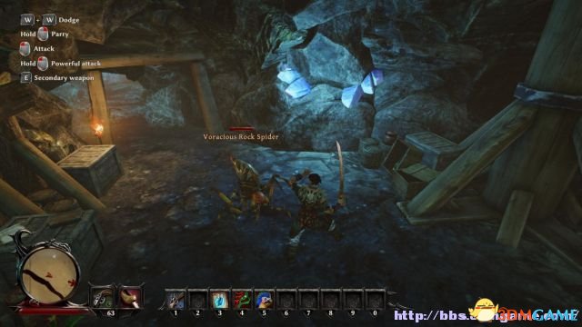 直接走到矿洞最底层,此时会有岩石蜘蛛从底层一个洞窟内闯出,击杀它们后内进洞窟就可以找到被岩石蜘蛛掳走的rami。