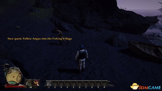 step2.到达卡尔拉多岛之后,会遇见一名高度警惕的渔夫安格斯,对话之后领取他的任务,跟随他走去渔村就可以获得荣耀奖励。