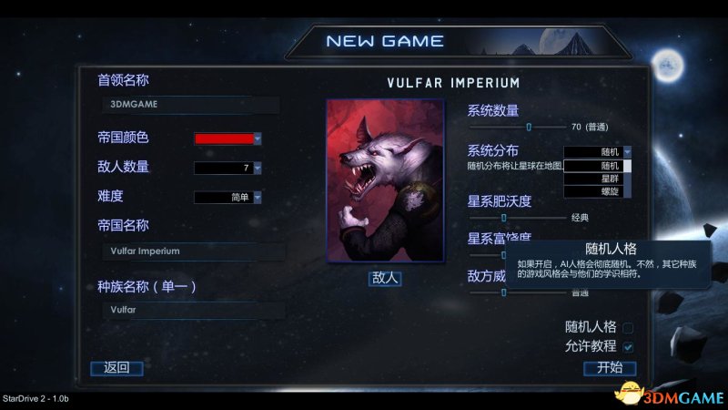 敌人数量:设置与玩家为敌的阵营数量,至少要有一个,至多可以有8个。