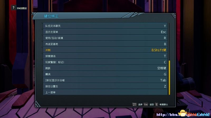 注:按Y键可以自定义键位,或者是选择其他操作模式。