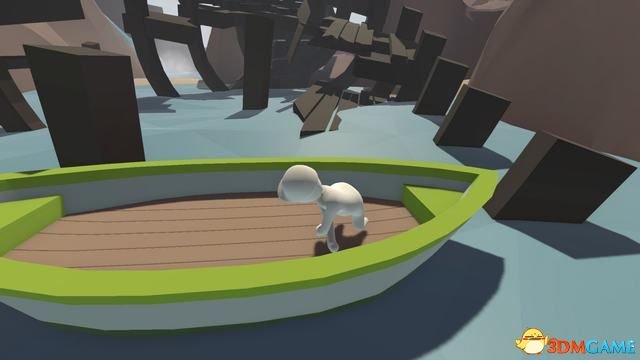 比较稳的方式是跳上右侧的绿色木船,用Bob独特的划船方法沿着水路前进。