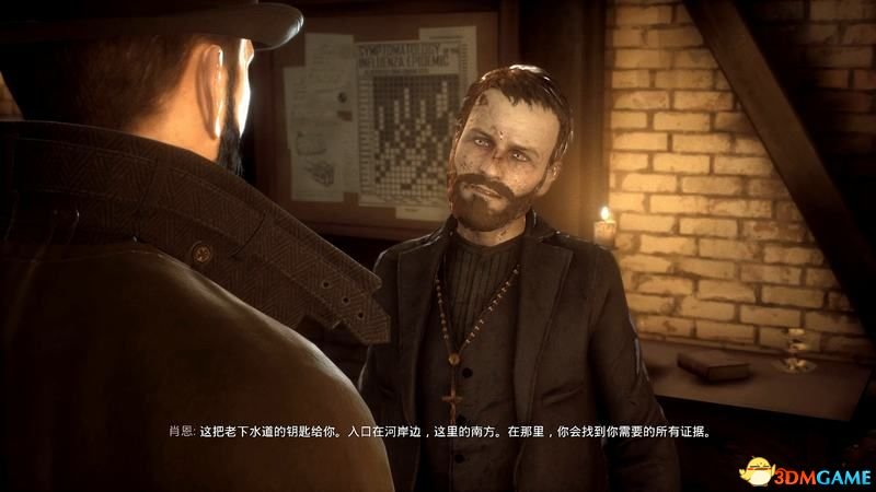 和肖恩交谈,他说人不是他杀的,并给了一把下水道钥匙,说里面有证据