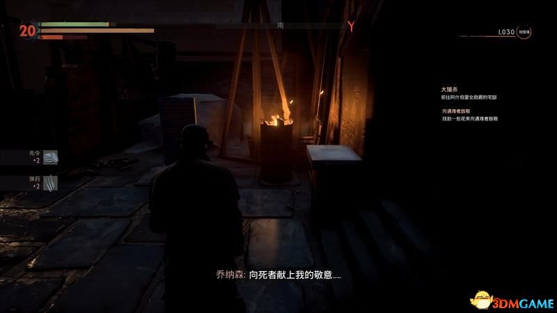 在不远处拾取花束放到墓碑上,回去和戴森说话任务结束