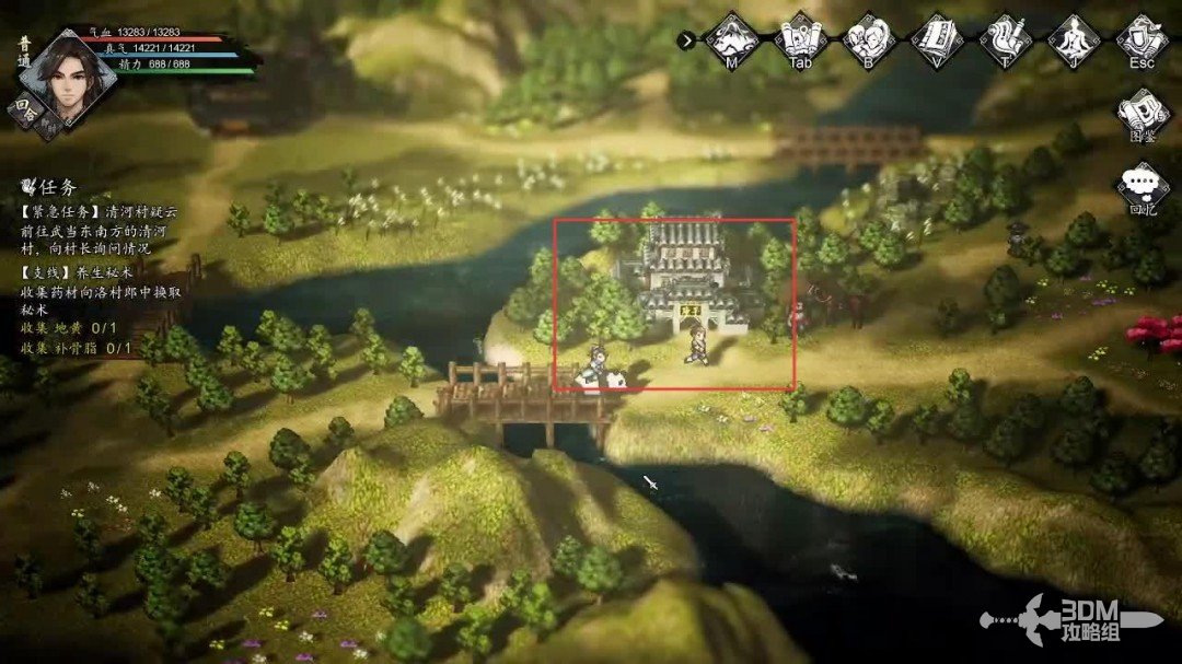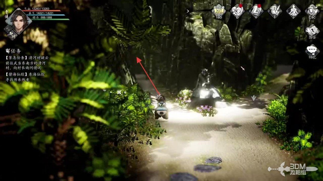 所有东西准备完毕之后,需要玩家前往如图所示的任意一片树林触发剧情,并且会有一场战斗。
