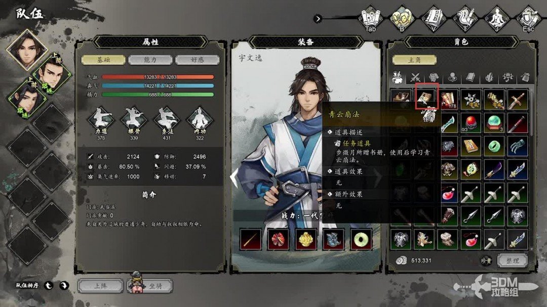 在平康城触发完剧情之后,背包里就有青云扇法,学习触发下一段剧情。