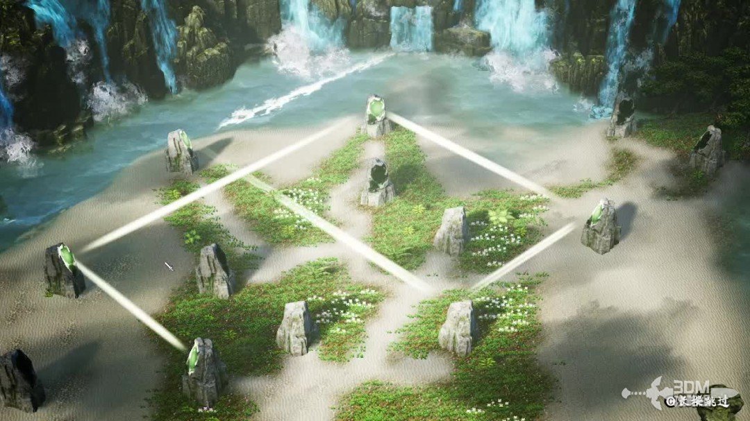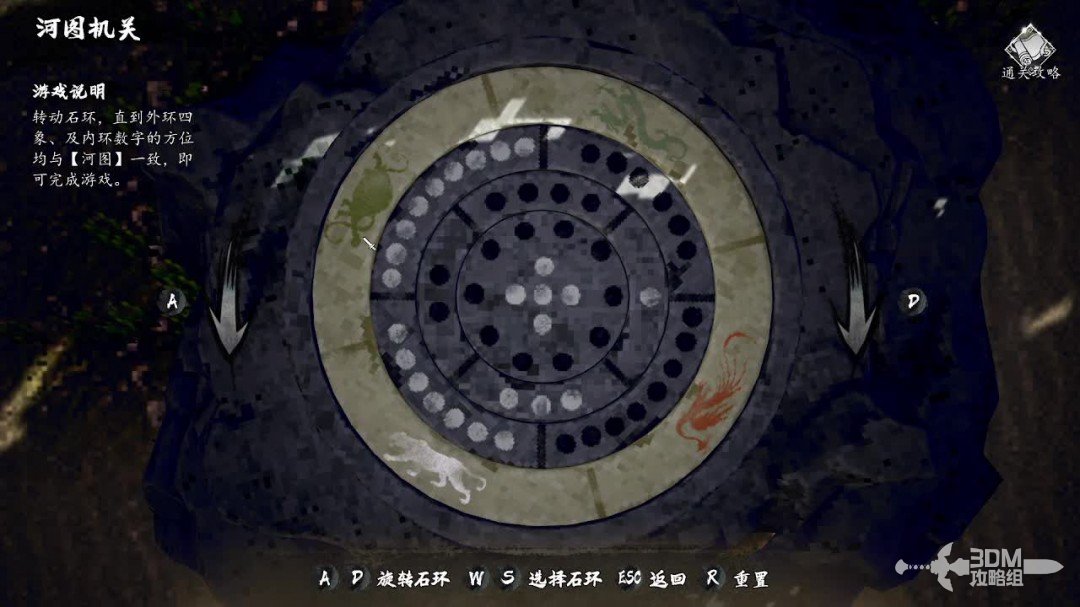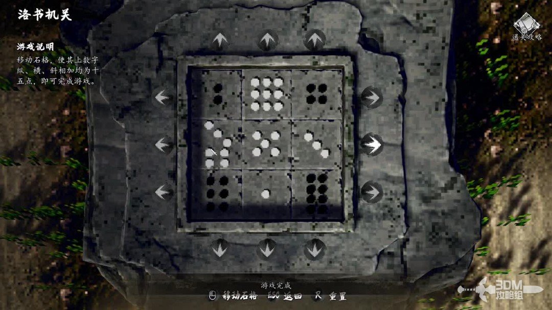 岛上共有两个解谜,先处理右边的洛书,首先需要一开始转动最边缘的数字,将二、四、六、八固定在四个角,然后中间的数字如图所示排列,也可以直接点击右上角跳过解密。