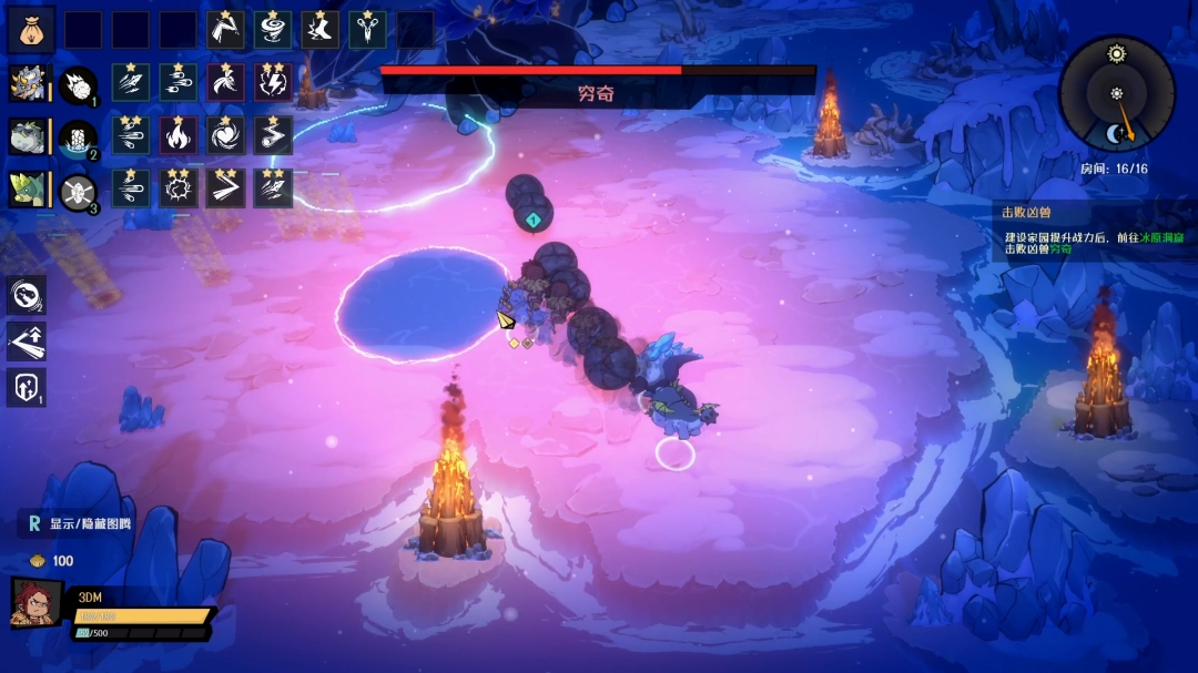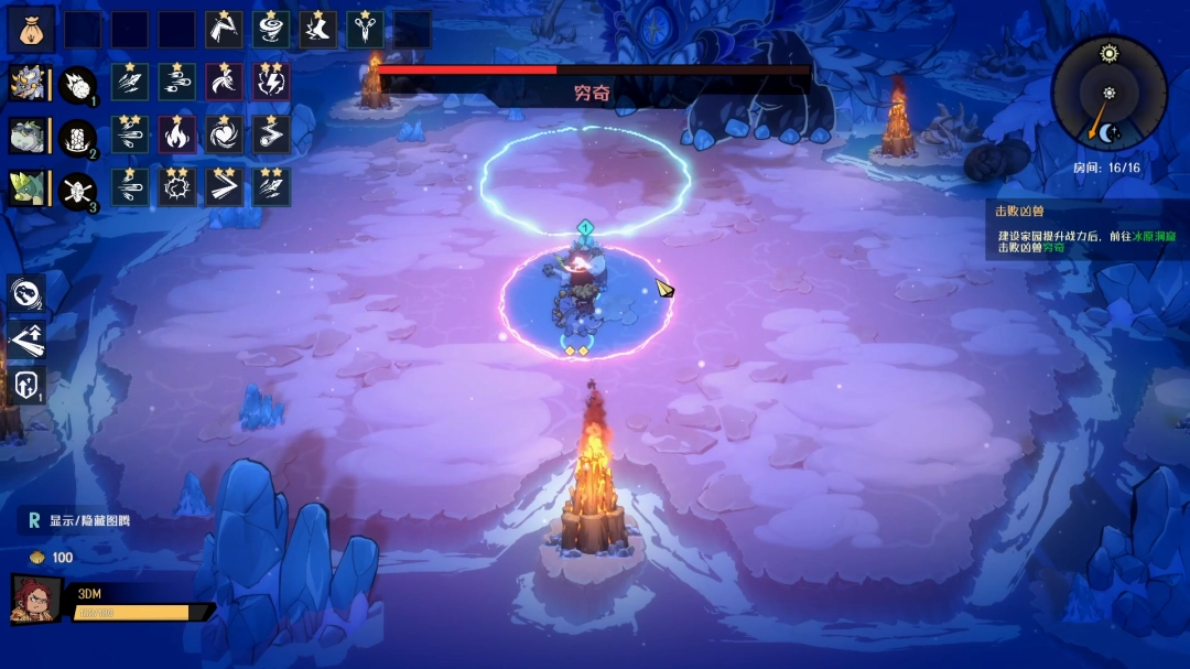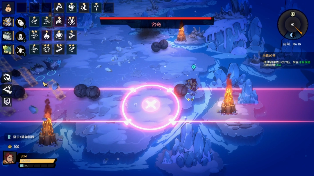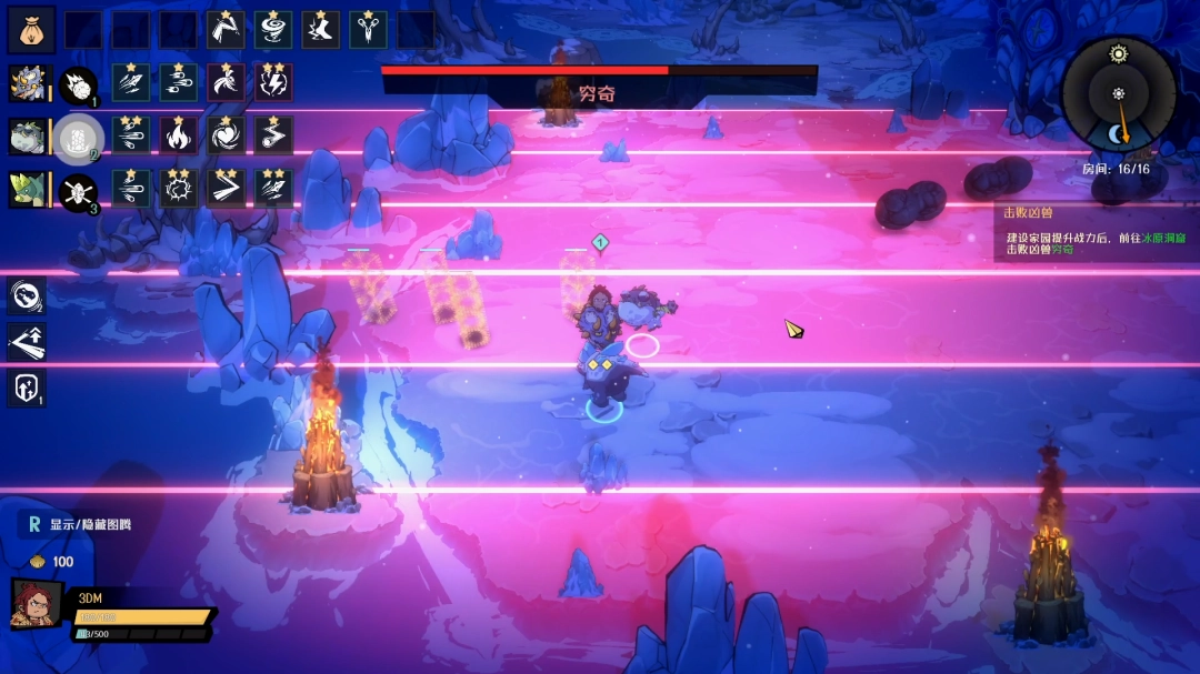 后面还有一种攻击,全屏特效,只有一条是安全的,尽量站在中间,能更加快速的躲避危险区域。