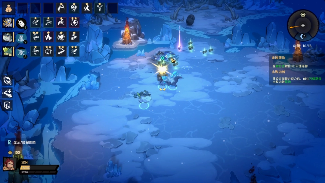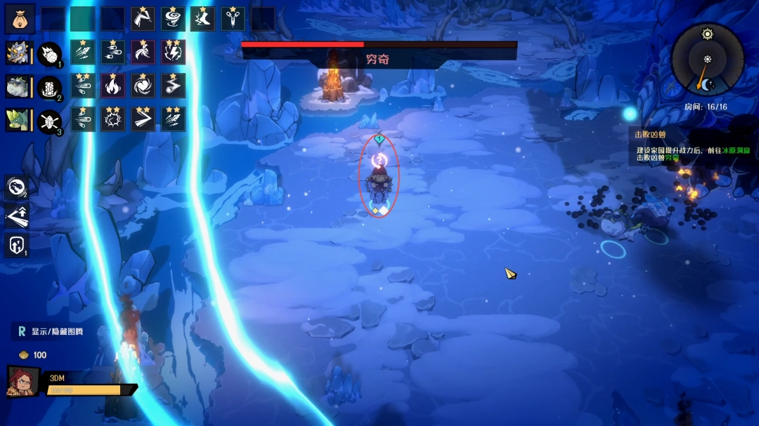 第二招现有一个圆圈,然后以圆圈为中心向两边发射风暴!简单难度只有左右两道风暴,而高难度还会有上下两道!