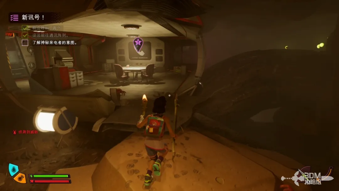 需要想办法从另一侧绕到通讯阵列;想要前往下一目的地,需要制作一些简单的道具;