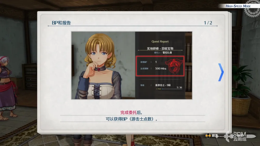跟着雪拉来到二楼,雪拉打开了之前二人在下水道搜寻到的盒子,里面是:准游击士的徽章,标志着二人正式加入了游击士。