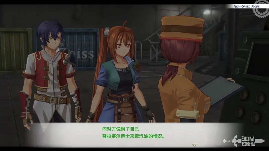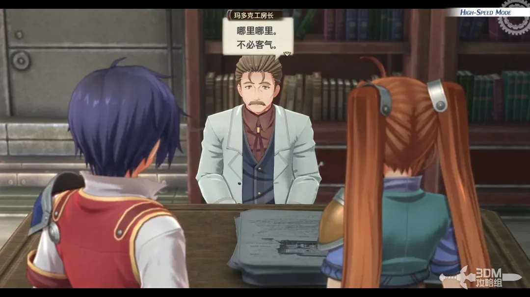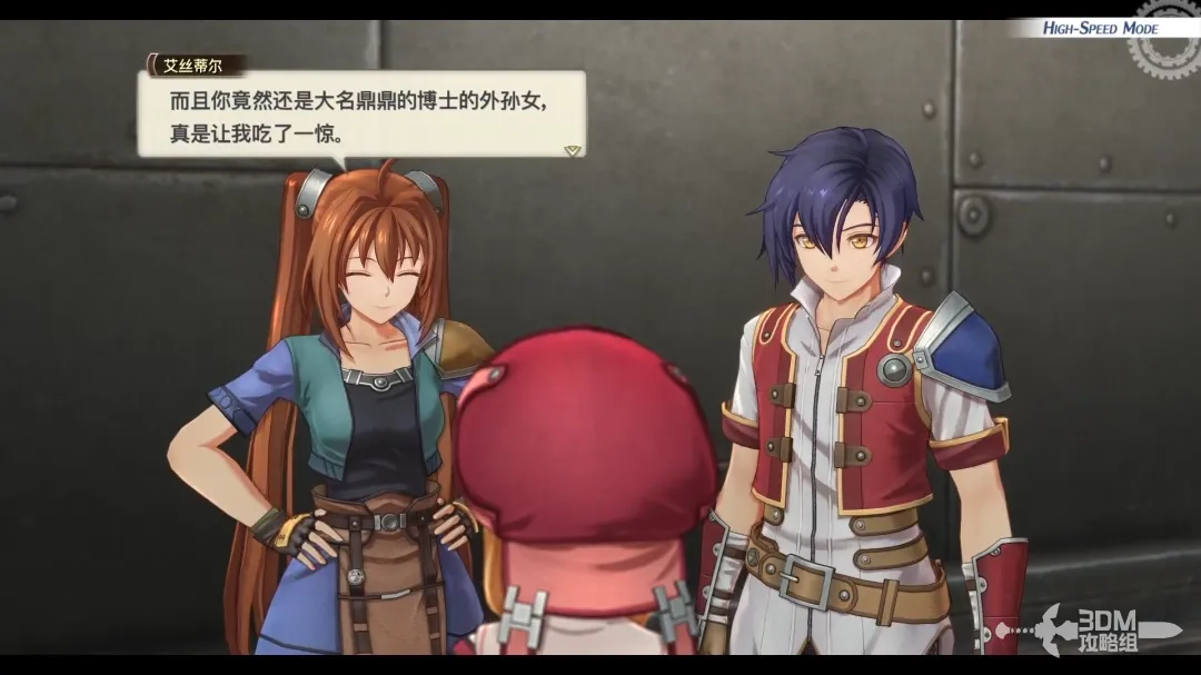将黑色导力器交给工房长研究,得知之前在洞穴里遇见的小女孩缇妲就是R博士(拉塞尔)的孙女,然后工房长让缇妲带着二人去见自己的外公。