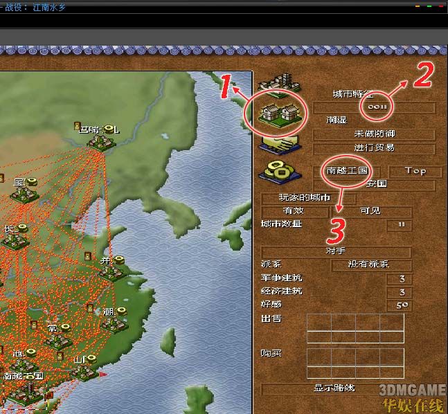 2、选择这个城市的属性,对手,同盟或诸侯。如果选择对手,那它会跟你做贸易,但不会帮你打仗;如果选同盟,那它会跟你做贸易,并可协助你征服其他城市;如果选诸侯,那么除了同盟能做到的之外,它还会每年给你上贡。但是,如果你的兵力比它还不如,真正开始玩的时候,它很快就会发动反叛,拒绝再给你上贡了。