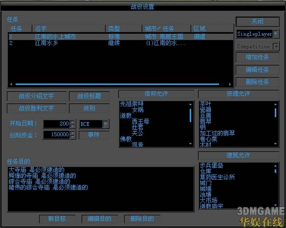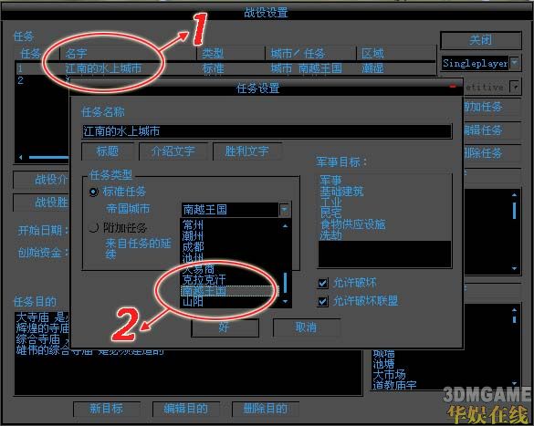 1、在任务栏上双击,弹出任务设置对话框(注意如果这里不设,创建战役时会因为“你的第一个战役没有设置地图”而失败)
