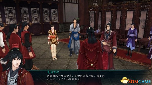 战斗结束,门主夏侯彰赶来命人打扫战场,感谢诸人的护卫,对瑾轩严厉斥责了一番。回屋休息,第二天启程前往折剑山庄,瑾轩坚持徒步行走,一路赏花玩景,幕天席地。