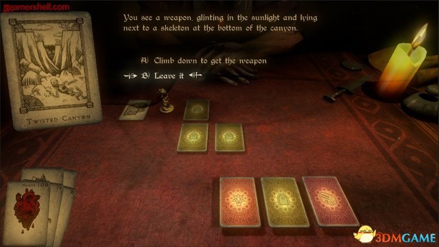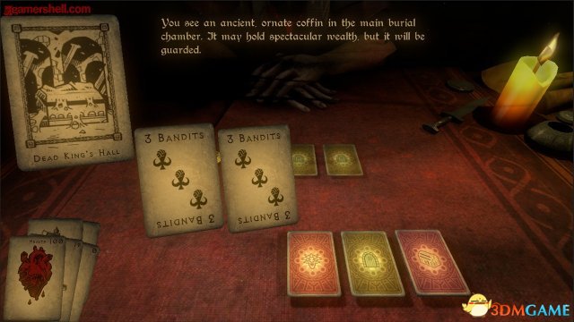 游戏使用一种能让玩家选择战利品的种类和冒险的种类的游戏机制。大多数传统美式RPG都使用随机数值来增加难度,《命运之手》使用卡牌机制让玩家可以完全控制他们的游戏体验。